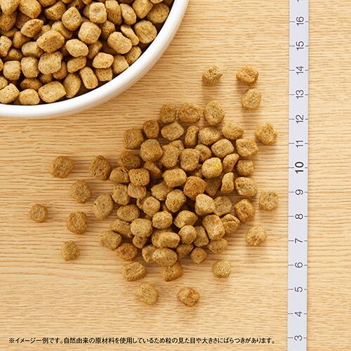 愛犬の健康的な減量をサポートするために、低カロリー・低脂質の製品設計。超小型犬〜小型犬でもおいしく食べられるよう粒を小さくし、噛ませるための独自の形状を採用しています。第一主原料にチキン(肉)を使用し抜群のおいしさを実現しました。
